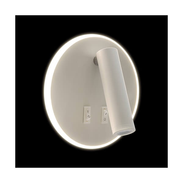 OTELLO LED C zidna svjetiljka s dva prekidača. Jedan prekidač aktivira rubno svjetlo koje pruža indirektno osvjetljenje snage 6W u toplo bijeloj boji svjetlosti. Drugi prekidač aktivira glavno svjetlo koje pruža direktno osvjetljenje snage 3W u neutralno bijeloj boji svjetlosti.